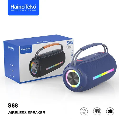 The HAINO TEKO GERMANY S68 Wireless Speaker offers superior sound quality and enhanced bass all in a sleek, compact design. Featuring advanced Bluetooth 5.0 technology, this wireless speaker enables simple and fast connection with any device. Enjoy superior sound without any disruption for up to 10 hours of play time.