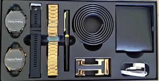 • Package Contents:ย Includes two smartwatches, a pen, a wallet, and a belt, providing a complete package to complement your style and enhance your daily routine.