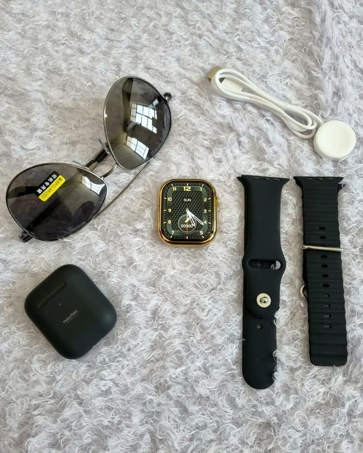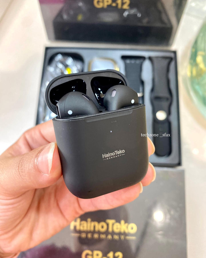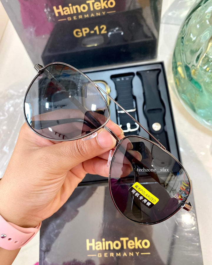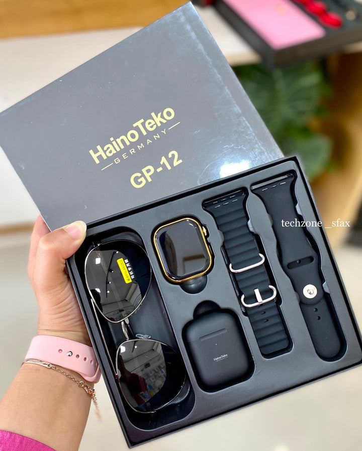 Experience the ultimate value for money with the HainoTeko GP-12 Max smartwatch bundle, offering a premium smartwatch, two interchangeable bands, wireless earbuds, and protective sunglasses at an incredible price of 99 AED.