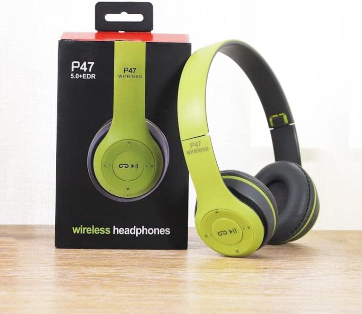 This headphone seems versatile, offering multiple ways to connect (Bluetooth, Aux in, TF Card, FM radio) and providing both wired and wireless options. The foldable design enhances portability, and the mic suggests it supports hands-free calling or voice commands.